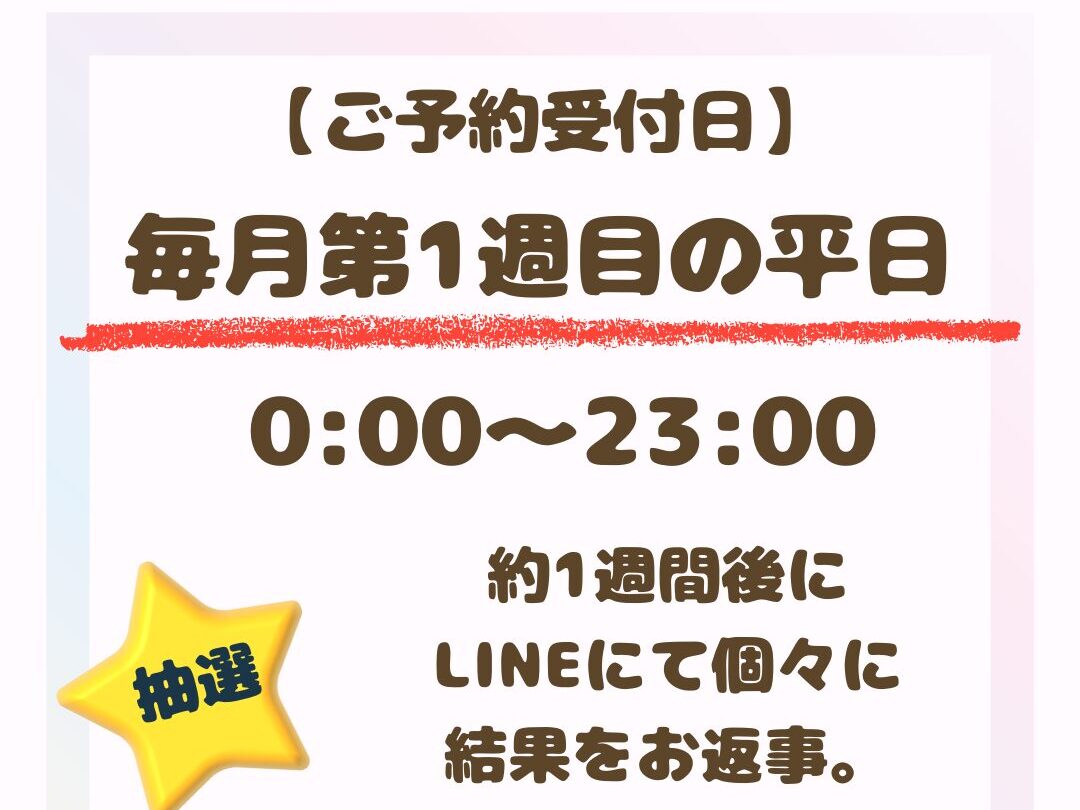 ※毎月、事前に当HPスケジュールまたはインスタグラムでもご予約枠と申請日をお知らせしています。