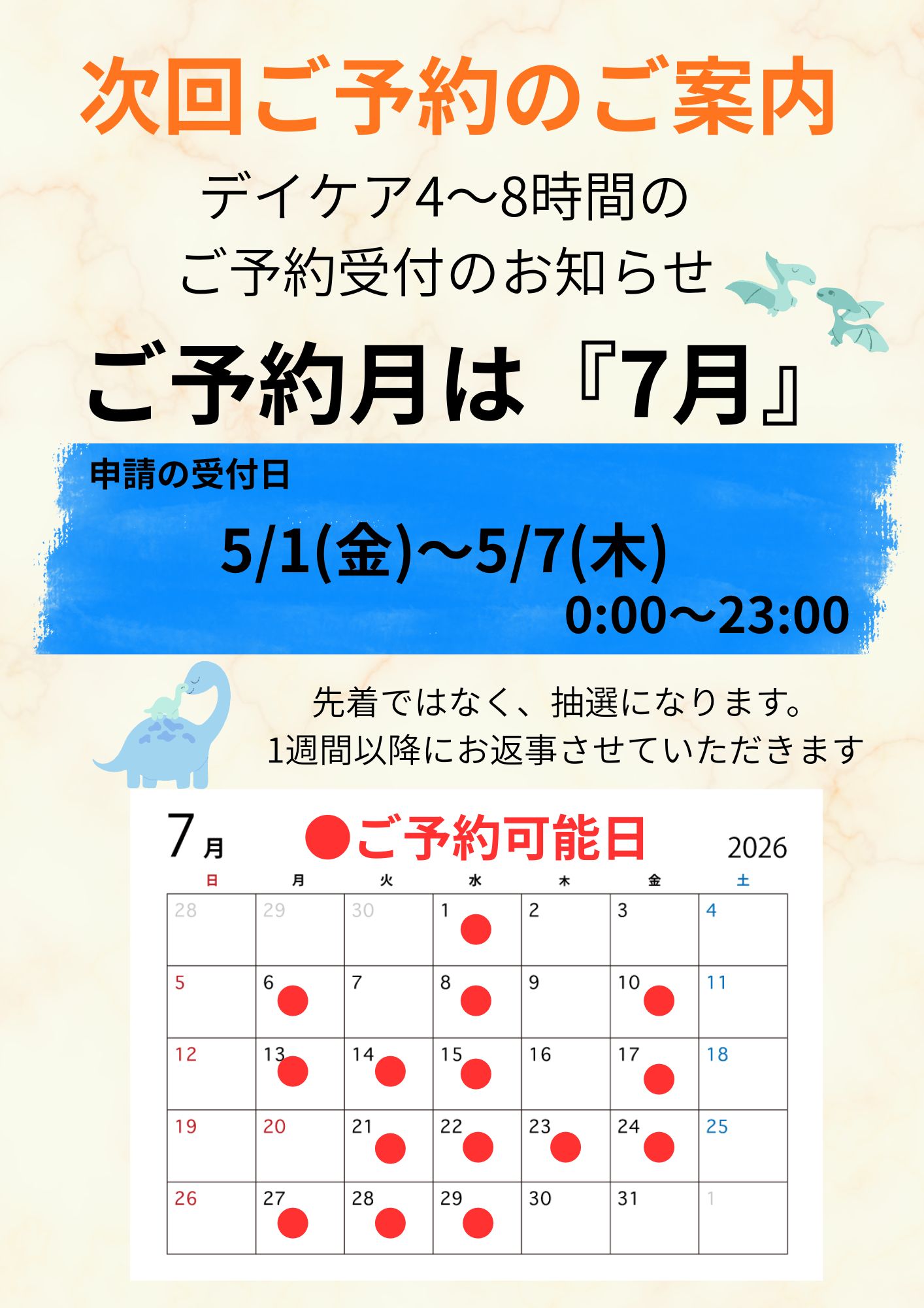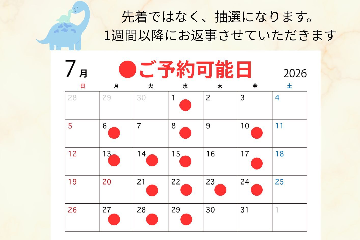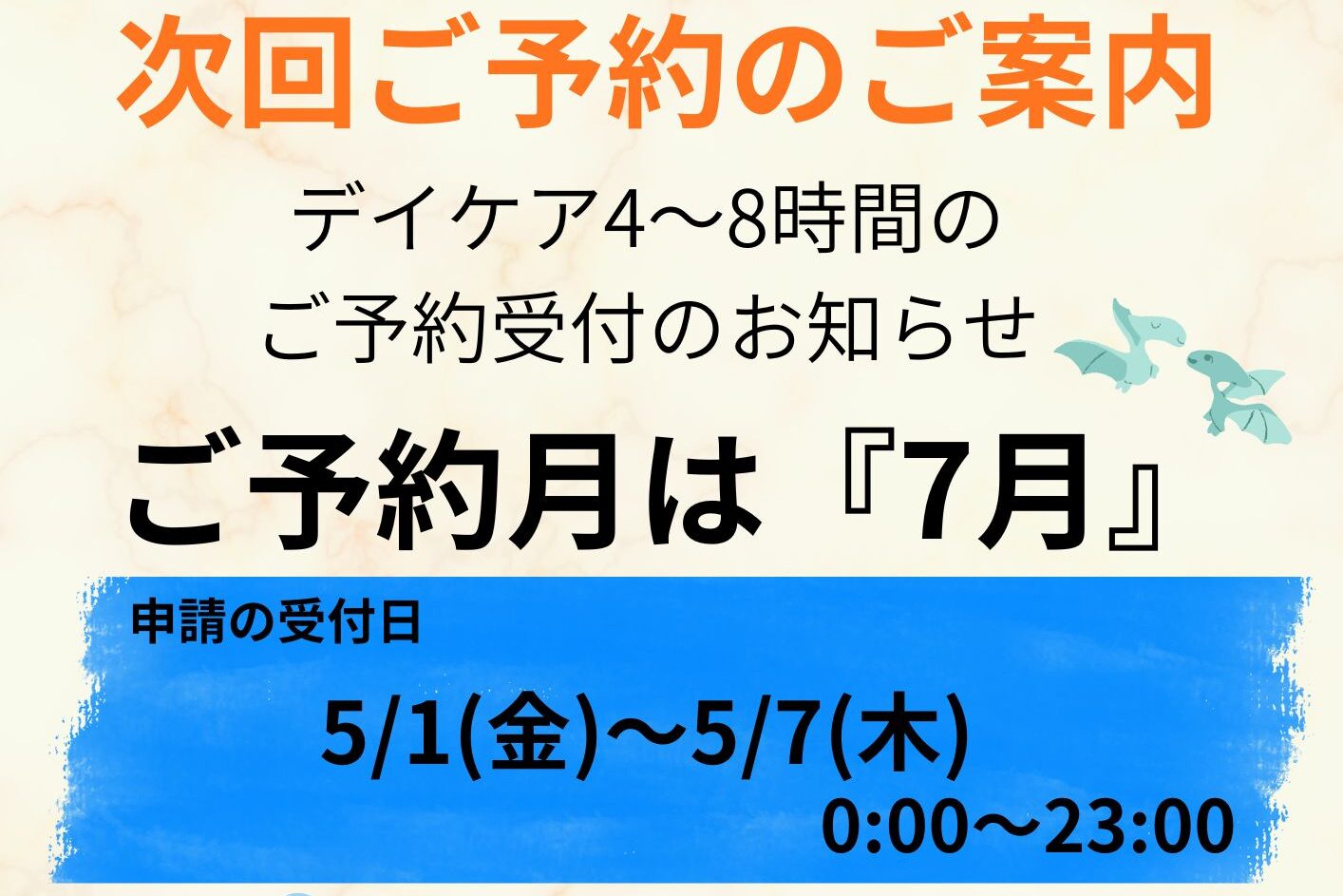 7月分のご予約の受付はGWになります〜
